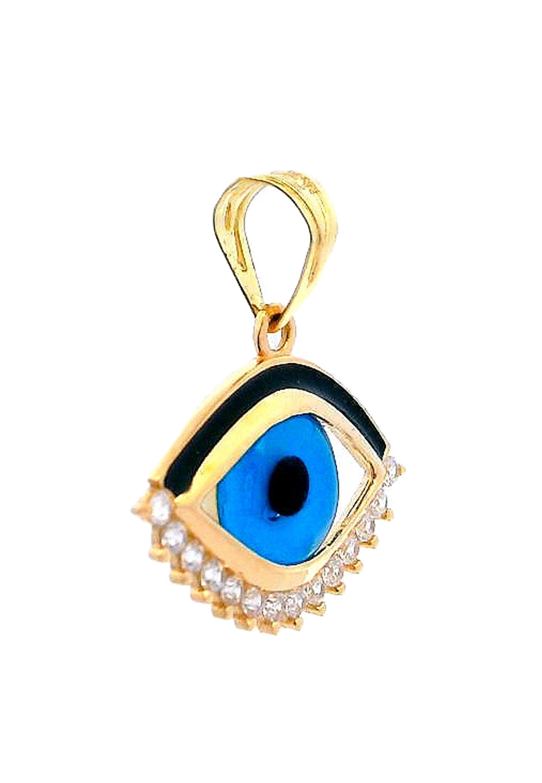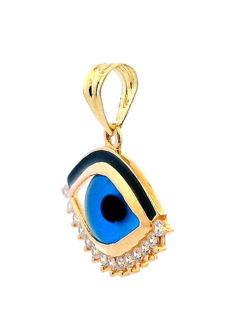 Description: Evil eye w/ blue & black colored glass, black enamel, High Quality Zircon