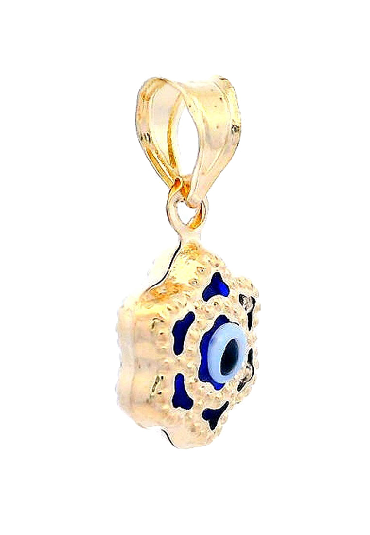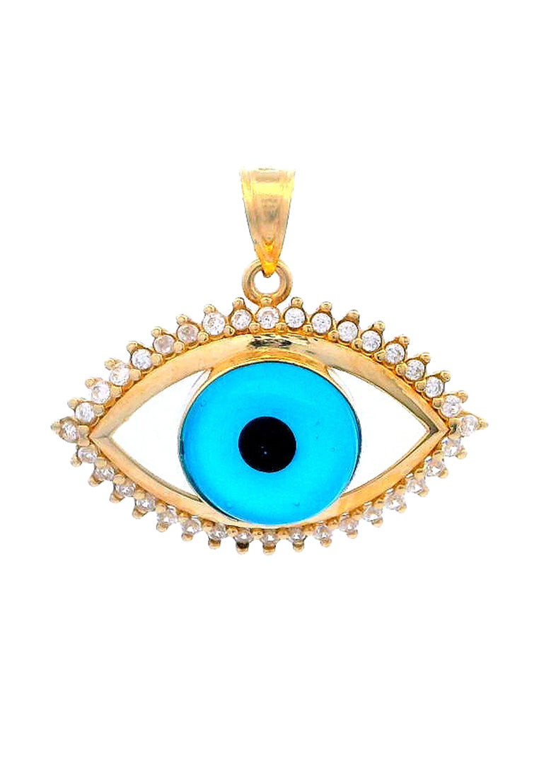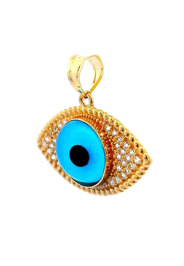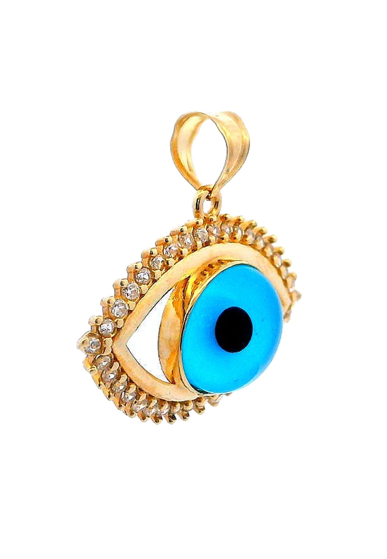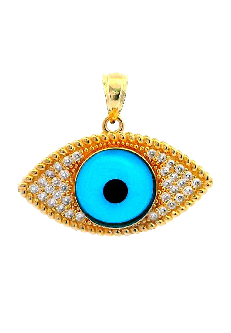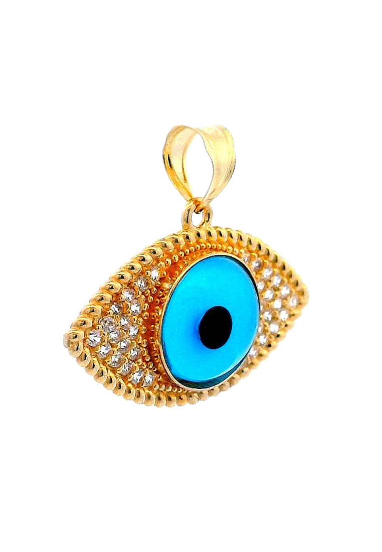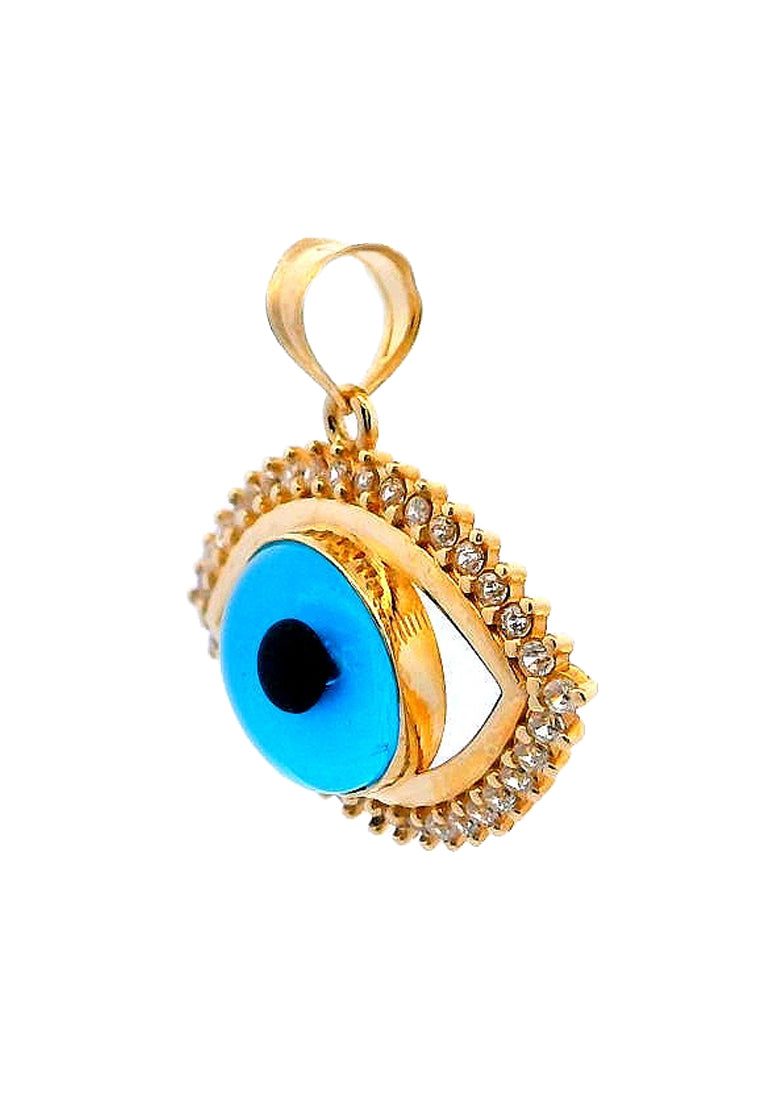 Product Code: GP-9749Product Category: Gold PendantGold Karat: 14KGold Color: Yellow GoldDescription: Evil eye w/ light blue & black colored glass & High Quality Zircon Stone Type: Light blue & black colored glass & High Quality Zircon Item Size: 23mmx21mmx7mmApprox Weight: +/- 2.13 grams