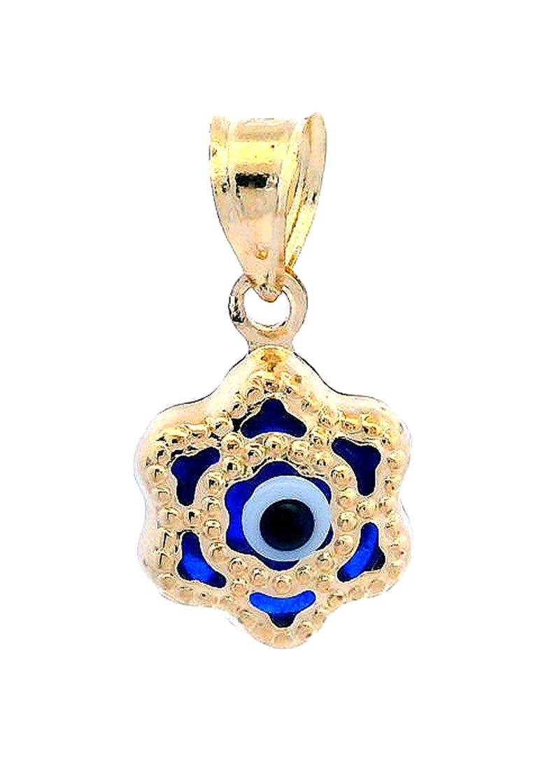 Product Code: GP-9755Product Category: Gold PendantGold Karat: 14KGold Color: Yellow GoldDescription: Flower design, Evil eye w/ blue,white & black colored glassStone Type: blue,white & black colored glassItem Size: 9mmx16mmx5mmApprox Weight: +/- 0.55 grams