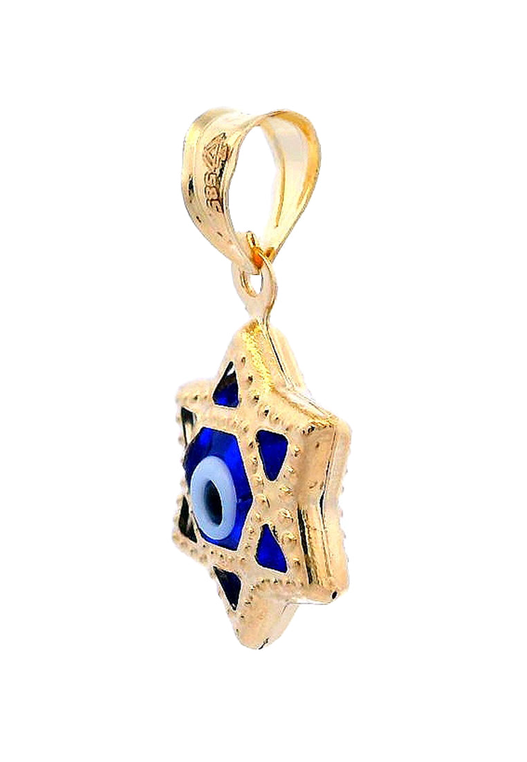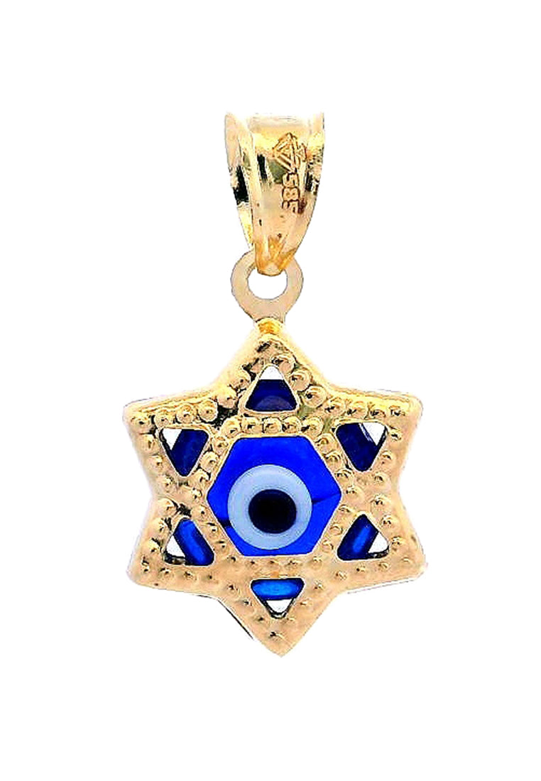 Product Code: GP-9756Product Category: Gold PendantGold Karat: 14KGold Color: Yellow GoldDescription: Star design, Evil eye w/ blue,white & black colored glassStone Type: Blue,white & black colored glassItem Size: 10mmx19mmx5mmApprox Weight: +/- 0.59 grams