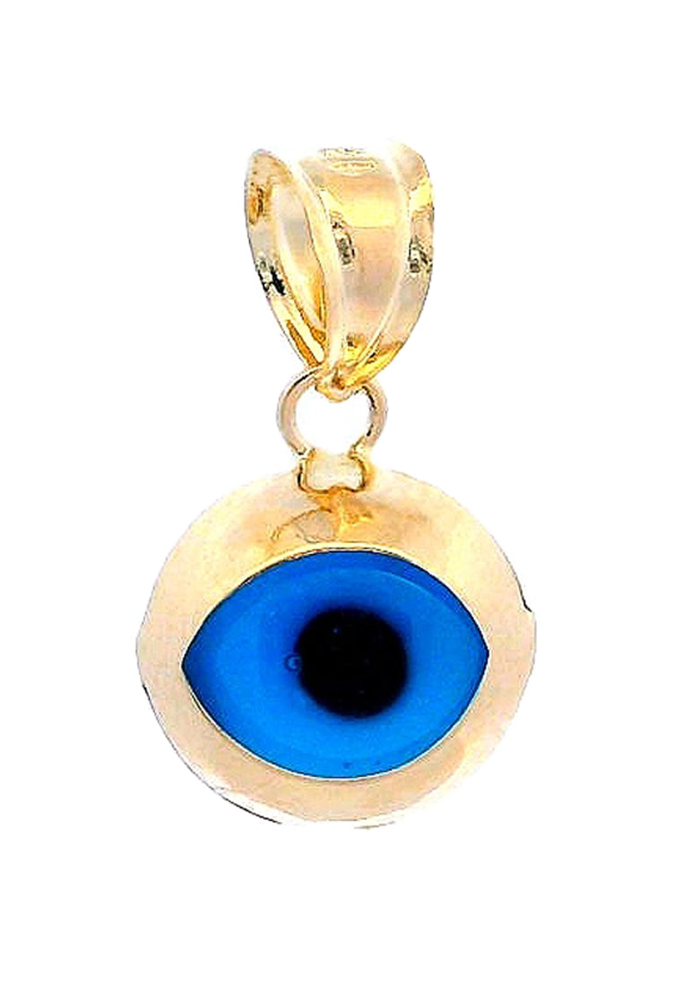 Product Code: GP-9758Product Category: Gold PendantGold Karat: 14KGold Color: Yellow GoldDescription: Evil eye w/ blue & black colored glassStone Type: Blue & black colored glassItem Size: 8mmx14mmx6mmApprox Weight: +/- 0.63 grams